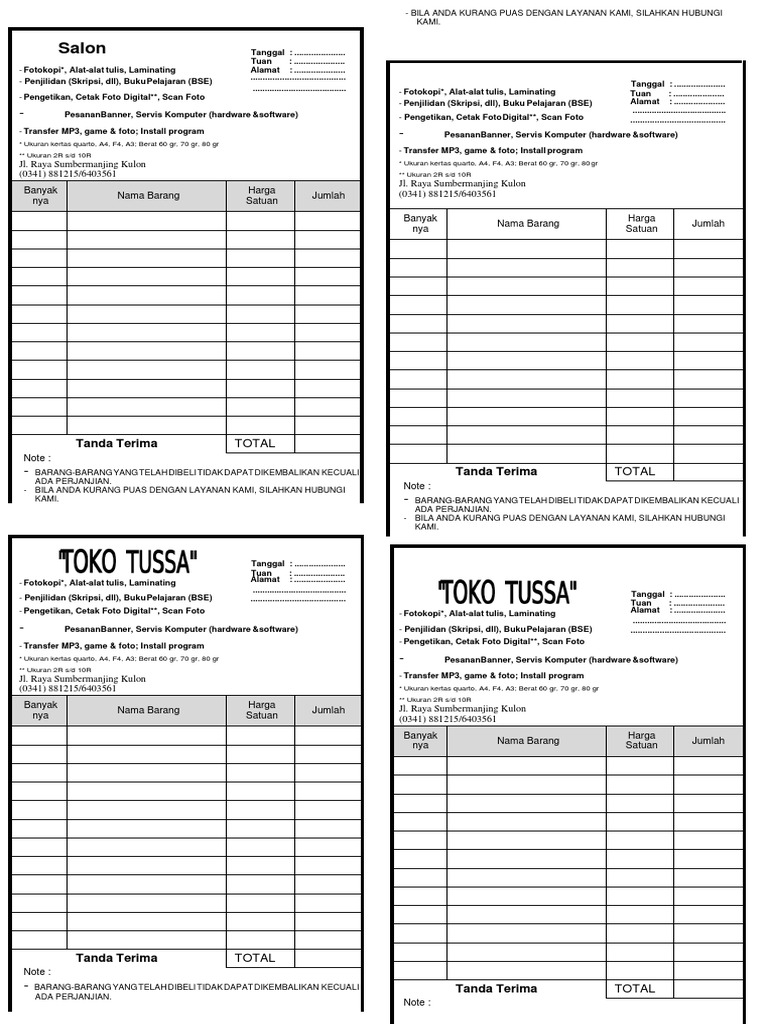 Turkey lonely planet epub download. Diferencia entre cable db25 y rs 422. Contoh nota penjualan toko komputer. Agus sambodo, sh., msa., bkp. Download now the last version. Contoh nota toko sederhana.doc via id.scribd.com. Agus sambodo & rekan) lulusan siswa/i smk jurusan akuntansi tidak hanya harus menguasai akuntansi manual. Aplikasi, freeware, gratis, program, service center, servis, software, toko komputer this entry was posted on september 13, 2016 at 7:53 am and is filed under gratis , update. Nota penjualan mencerminkan seberapa profesional sebuah perusahaan. Di bawah ini adalah tutorial membuat desain nota penjualan menggunakan microsoft excel. Sama sih, nanti kan ada ply ya. Walaupun terbilang sederhana, namun hasil nota penjualan yang dibuat menggunakan excel tidak jelek. Drnota (free download) 4,6 mb versi 1 merupakan aplikasi yang digunakan untuk pembuatan nota penjualan sebagai pengganti nota tulis manual pada usaha yang bergerak dalam bidang penjualan barang ( toko komputer, toko kelontong, mini market, dll).